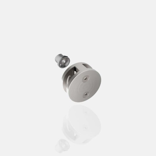 La pince à verre ronde Ø60mm intermédiaire est conçue pour offrir une sécurité optimale. Elle est idéale pour réaliser des garde-corps en verre à la fois robuste et moderne.