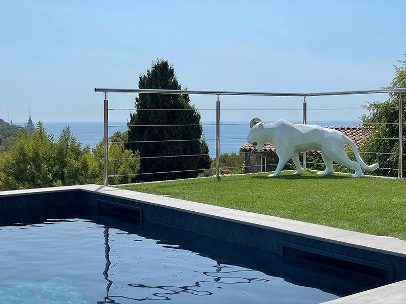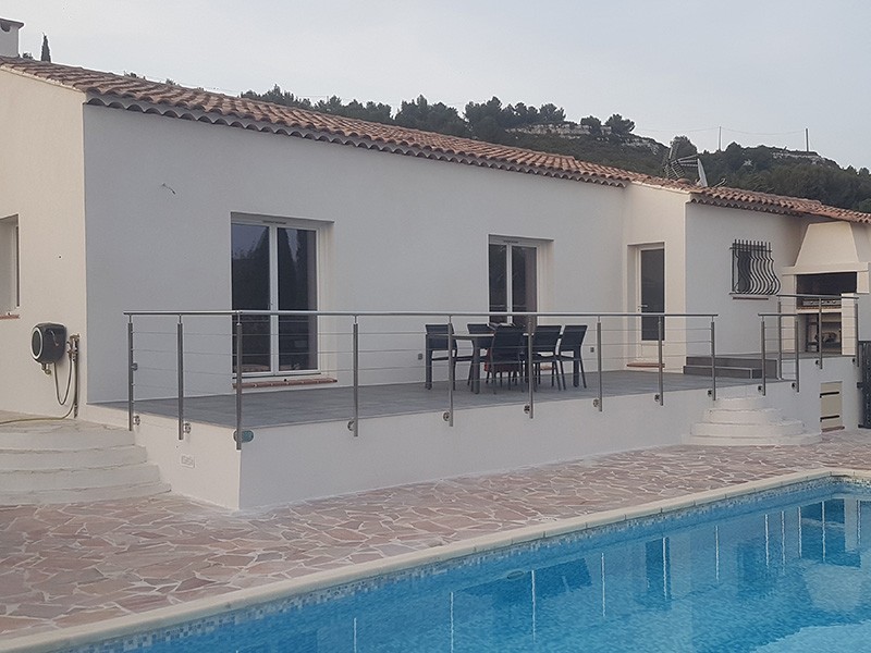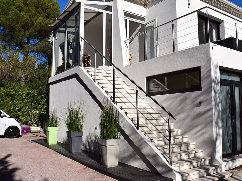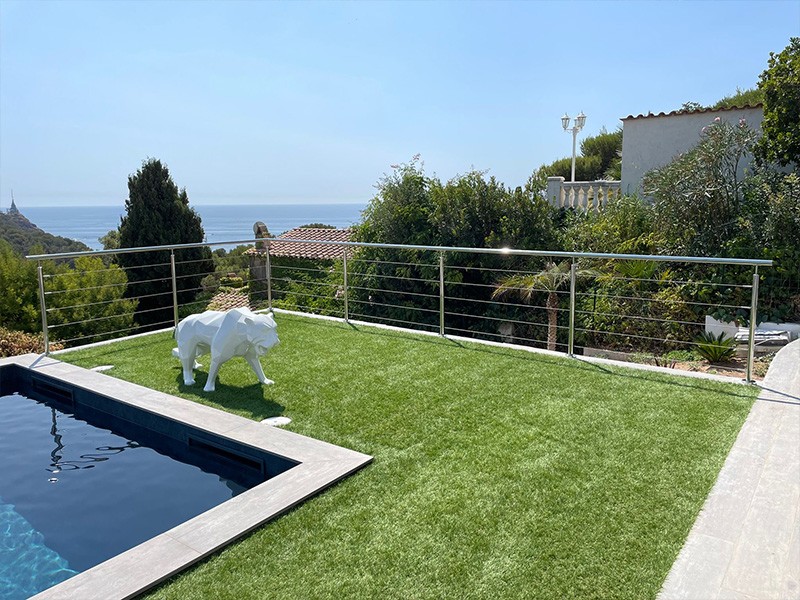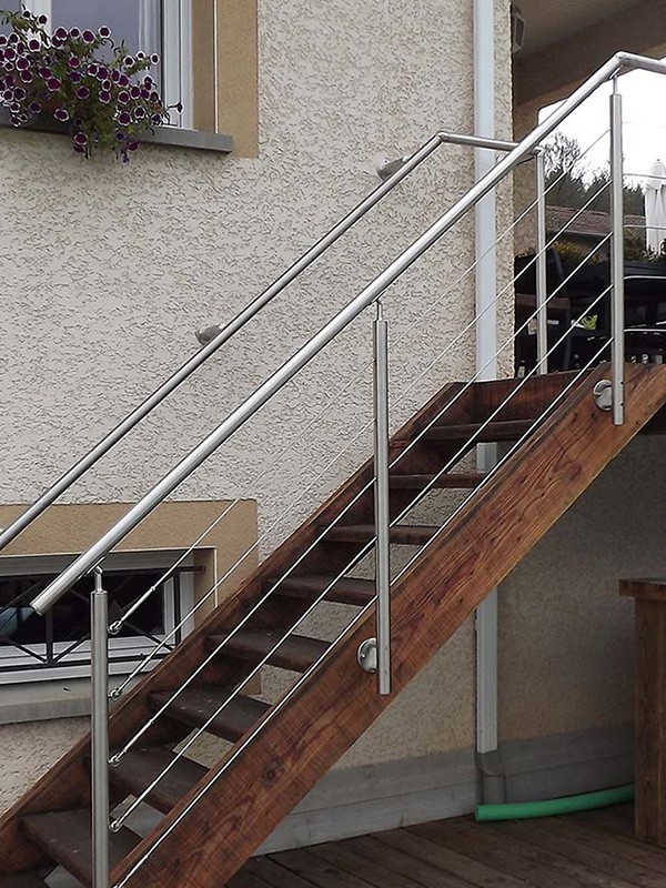 Vous trouverez également des exemples de rambardes en départ mural, avec des tendeurs muraux ou en départ poteau, à choisir selon votre configuration. Chaque modèle peut être avec des mains courantes en bois ou en inox et être fixé à la française ou à l'anglaise. C'est une protection à la fois discrète et moderne, qui sécurise de façon optimale. La finesse du filin inox n'enlève en rien sa capacité à protéger de la chute. Une fois tendue, il représente une protection efficace.