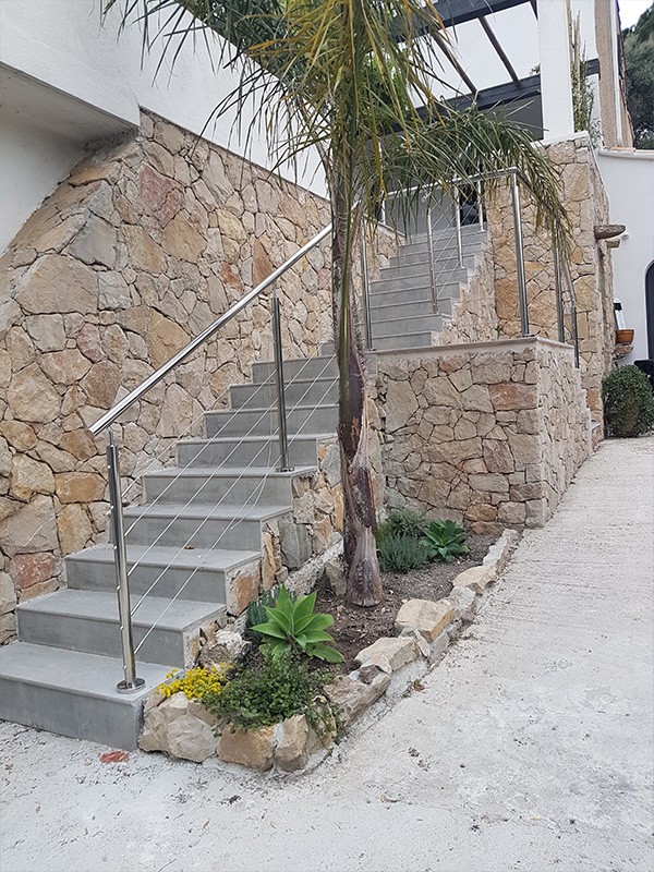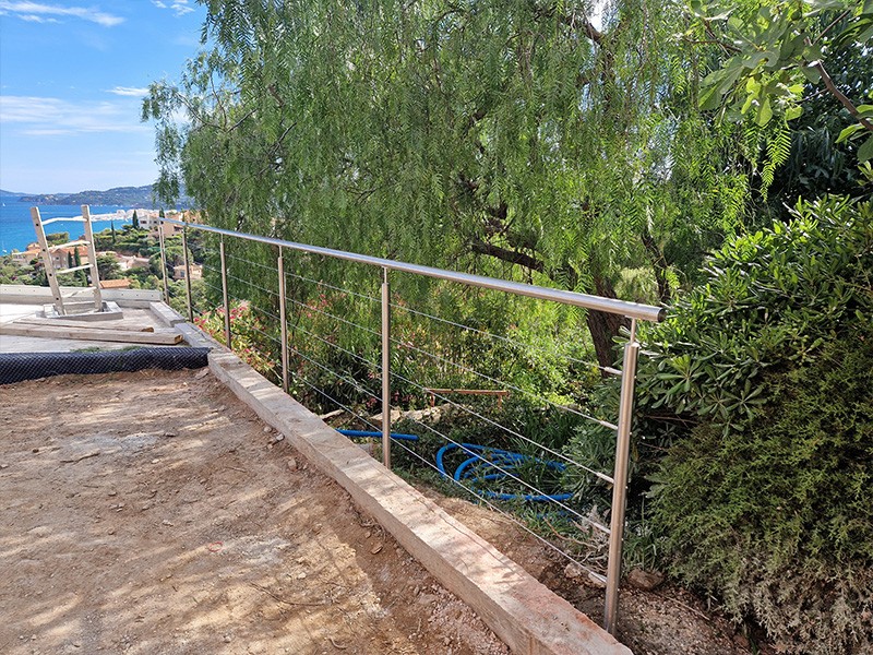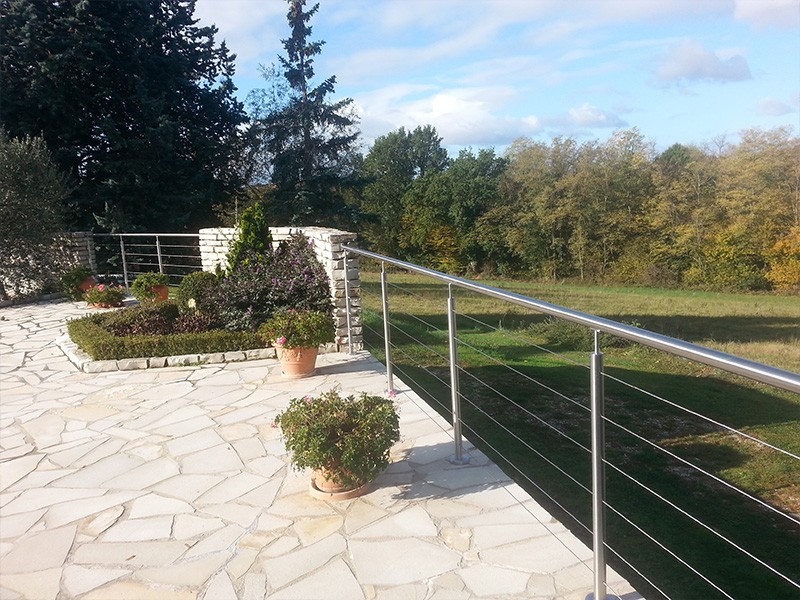 Retrouvez dans cette catégorie des photos de garde-corps à câbles traversants ou sur supports installés en escalier, sur une mezzanine ou encore sur une terrasse, en inox 304, 316 brossé et 316 poli miroir. Le câble traversant est installé à l'horizontal et se fixe avec des fixations comme des tendeurs ou des embouts chapes en inox. Son côté accastillage se marie avec tous les styles de décoration, qu'elle soit classique, moderne ou atypique, et il peut être utilisé en intérieur comme en extérieur grâce aux différents inox disponibles.