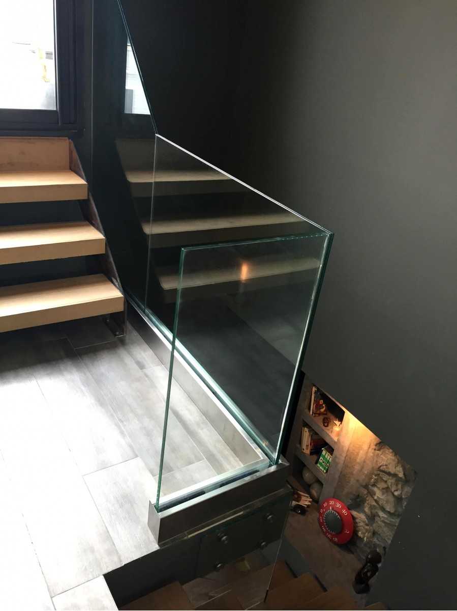 Le garde-corps tout en verre peut également être installé en intérieur. Son autre atout est de laisser passer la lumière naturelle du soleil et ne fait donc pas de barrière à votre luminosité. Installé sur une mezzanine ou un escalier d'intérieur, il apporte un design chic et élégant. Il est généralement utilisé dans les maisons ou appartements au style moderne, et apporte davantage de luxe à l'espace où il est installé. En escalier, le profilé sera remplacé par des pinces, selon votre type de marches, mais toujours sans aucun poteau pour le maintenir. Le verre sera une fois encore maintenu uniquement par le bas.
