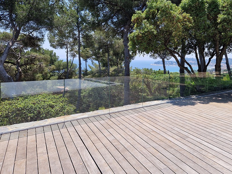 C'est en extérieur que le garde-corps tout verre sur profilé est sous son meilleur jour. Grâce à une fixation uniquement par le bas, il laisse intacte la vue qui se dégage de votre terrasse ou jardin sans pourtant négliger l'aspect sécurité. Le résultat est à couper le souffle, comme le prouve les photos ci-dessous. Installer une rambarde tout verre sur profilé apporte un design inégalable et magnifie l'espace où il est exposé. C'est la protection contre la chute idéale si vous souhaitez continuer de profiter de votre vue dégagée au maximum. Mais si au contraire vous souhaitez vous cacher du vis-à-vis, la version avec verre opale non transparent vous satisfera tout autant.