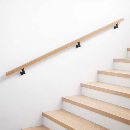 La rampe d’escalier murale noir et bois associe esthétique contemporaine et sécurité au quotidien. Composée de supports muraux en acier noir et d’une main courante en bois de chêne carrée, elle assure une excellente prise en main et un guidage optimal dans les escaliers ou zones d’accès.